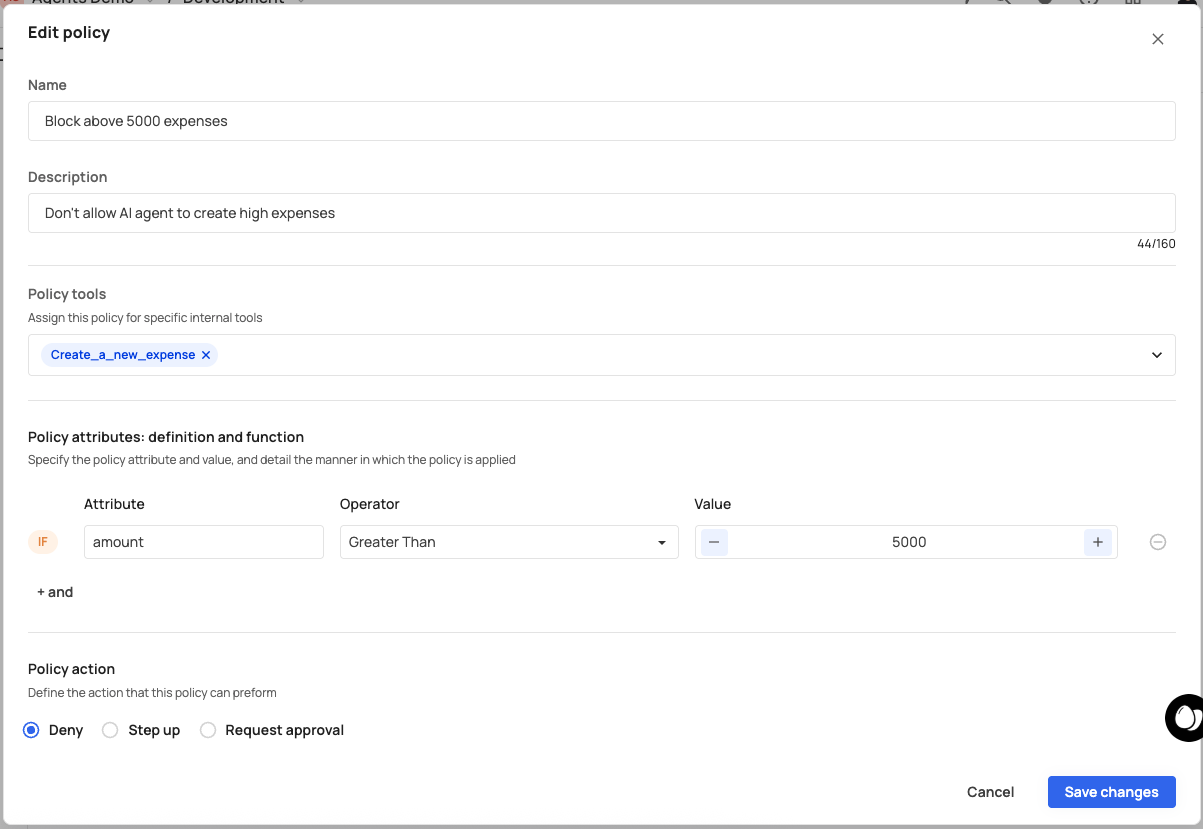 | Tools | The tools this rule applies to, shown as badges (e.g., Delete_expense). |