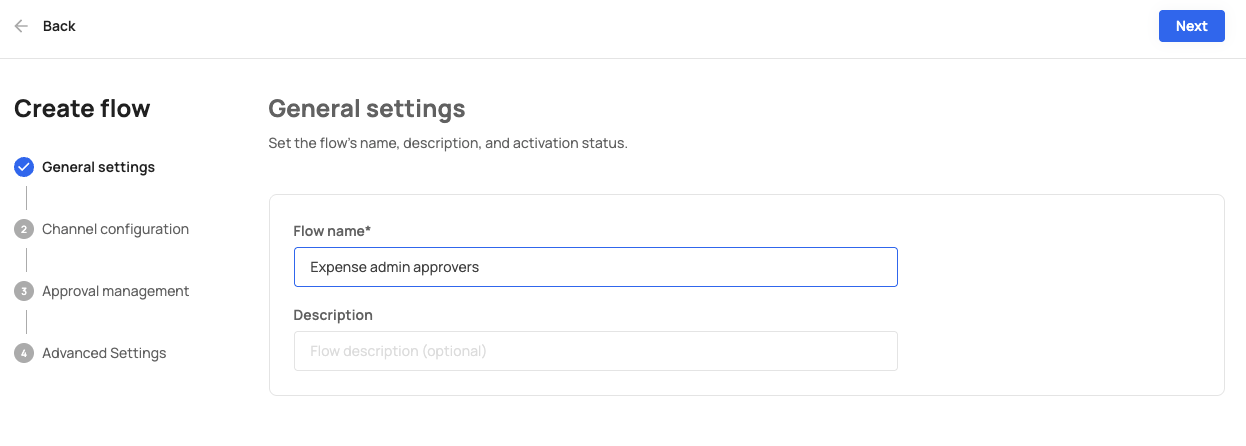 | Flow name | A descriptive name for the approval flow. | Yes |