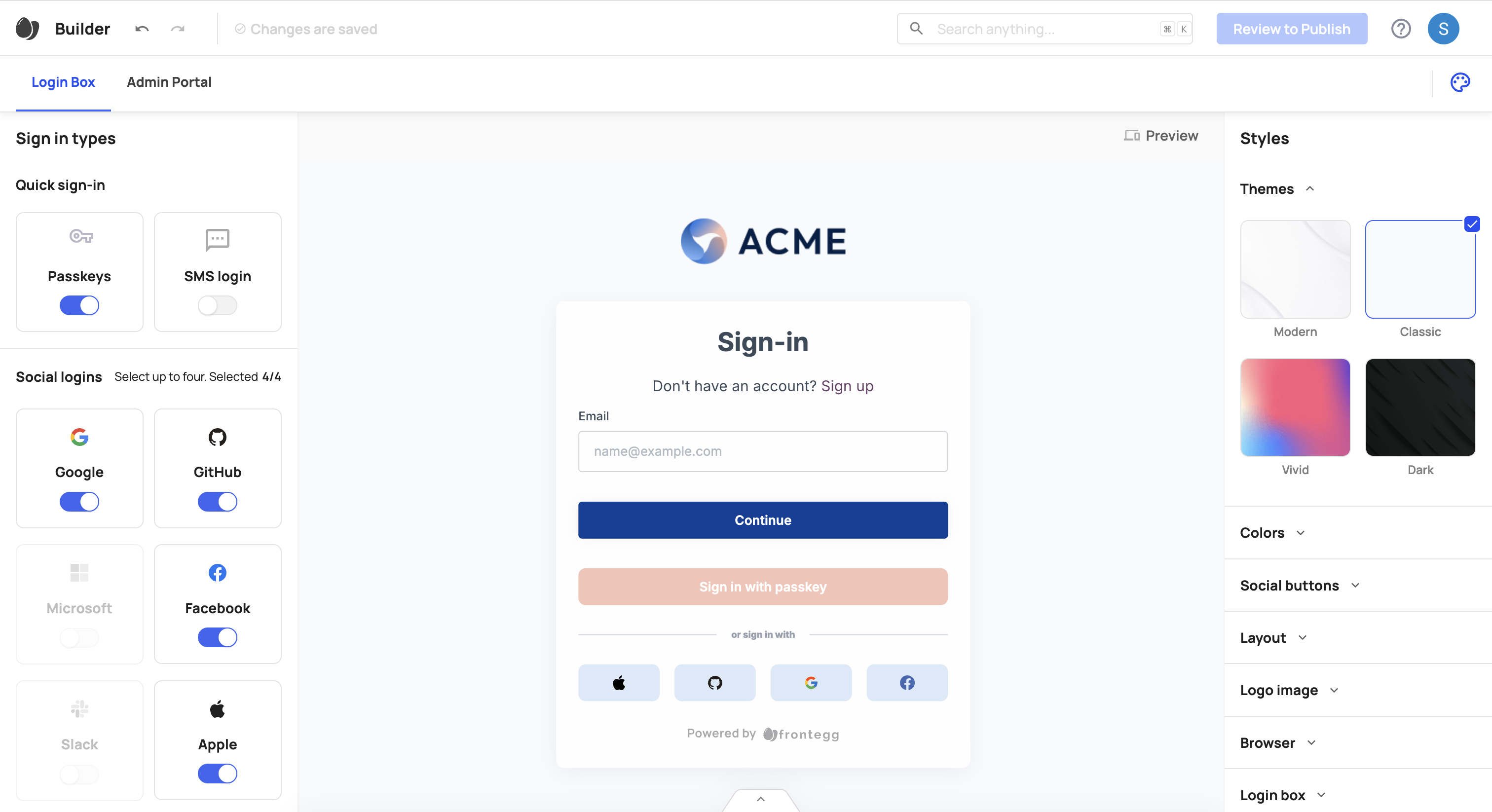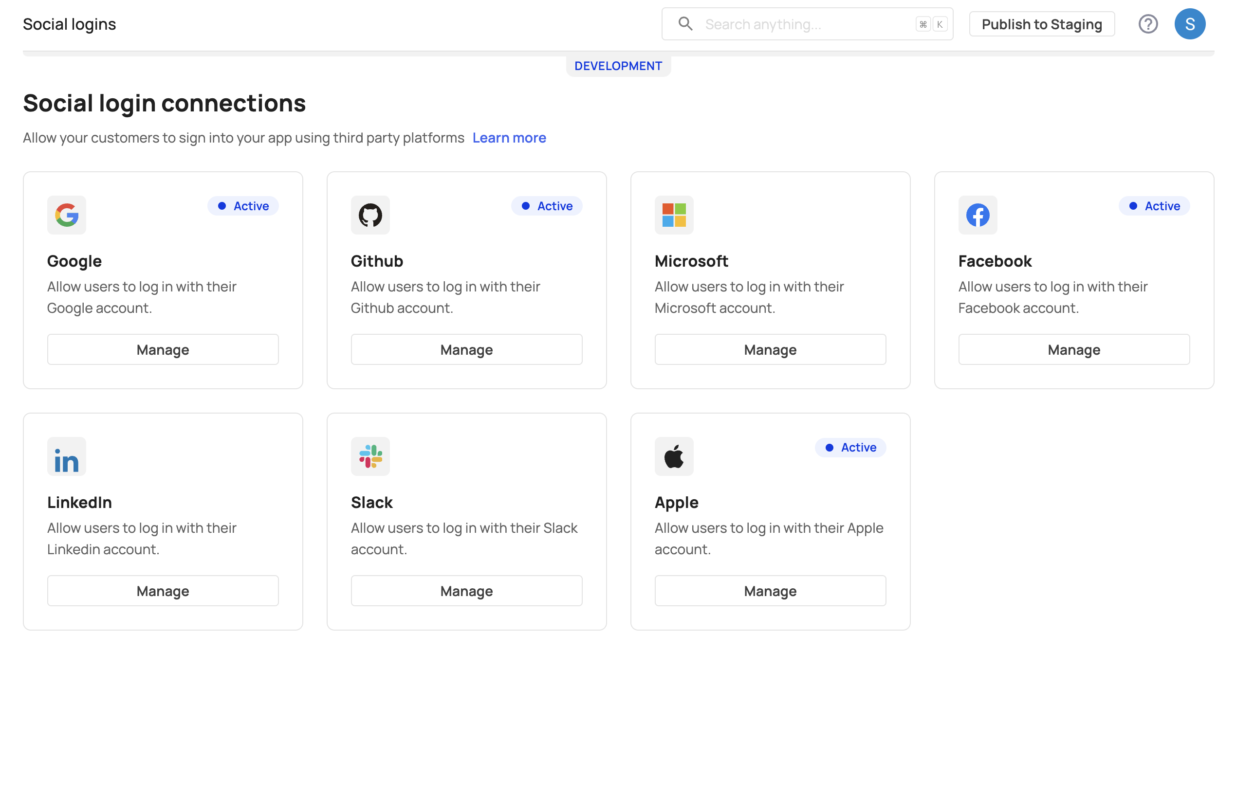 When migrating a project between environments (e.g., from development to production), Frontegg automatically transfers your social login settings.