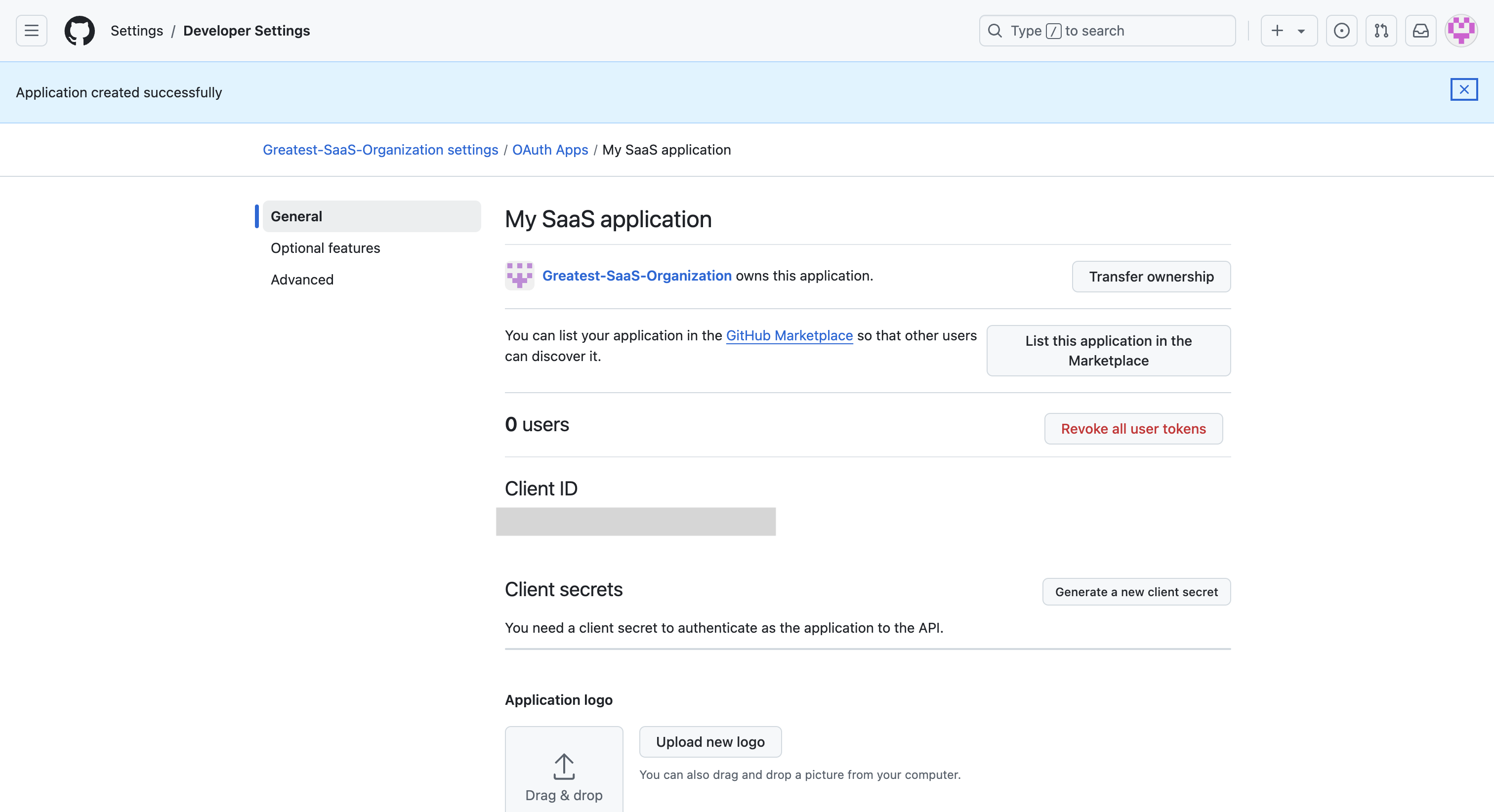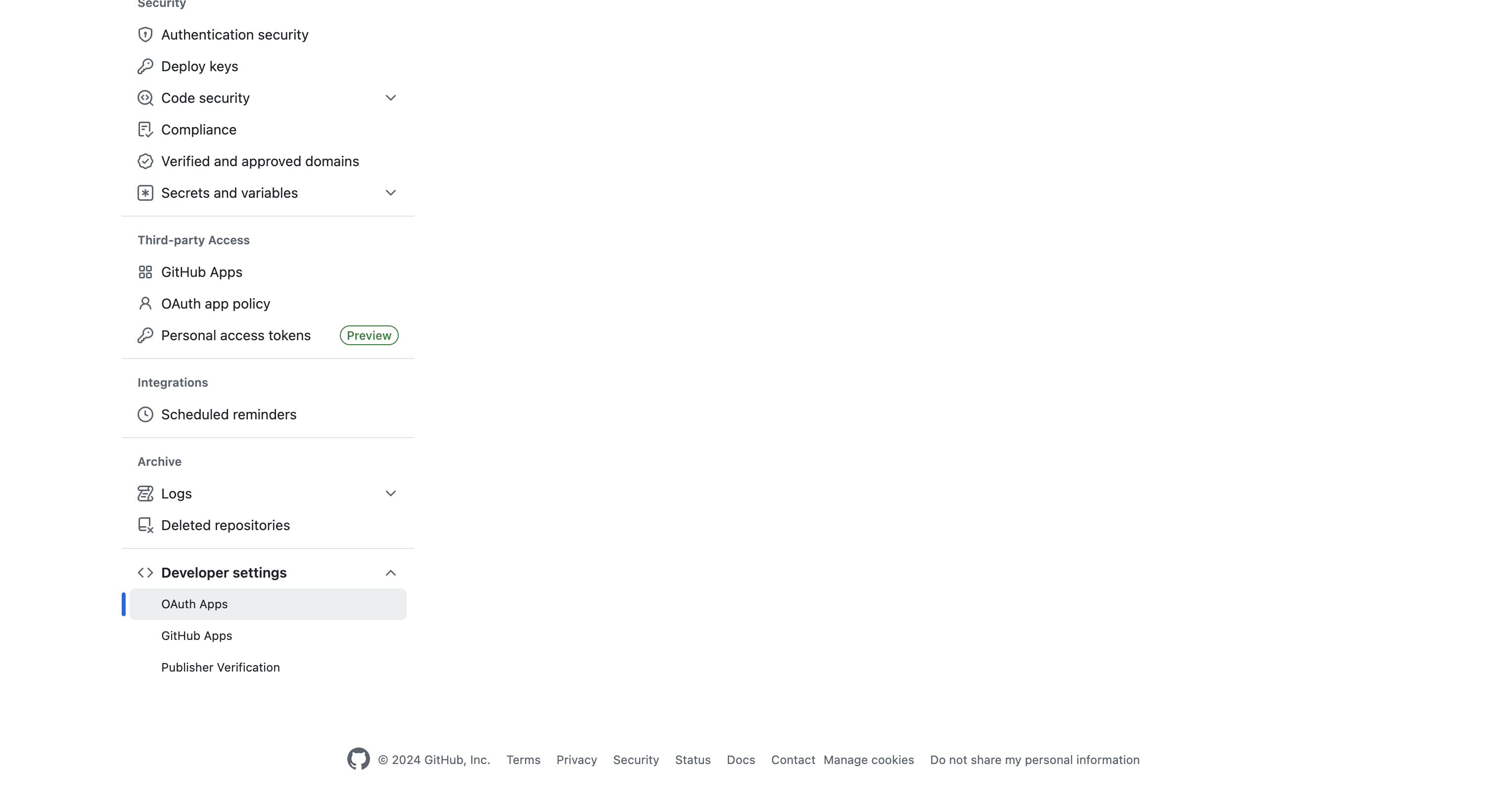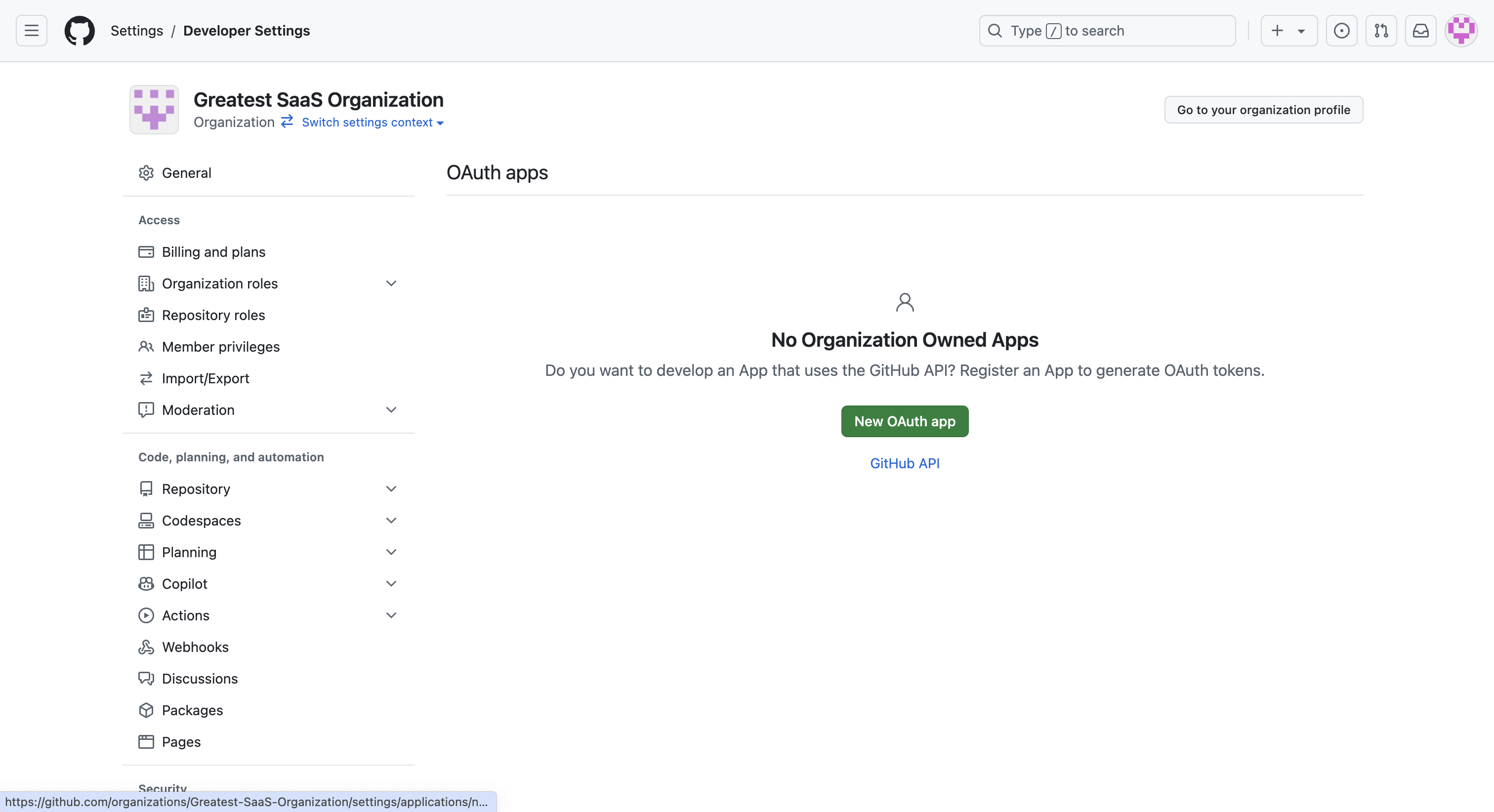 - Click New OAuth App and fill in the application name and details. For the callback URL, enter your application URL (use your Frontegg domain if using hosted login or your app domain if using embedded login), followed by
