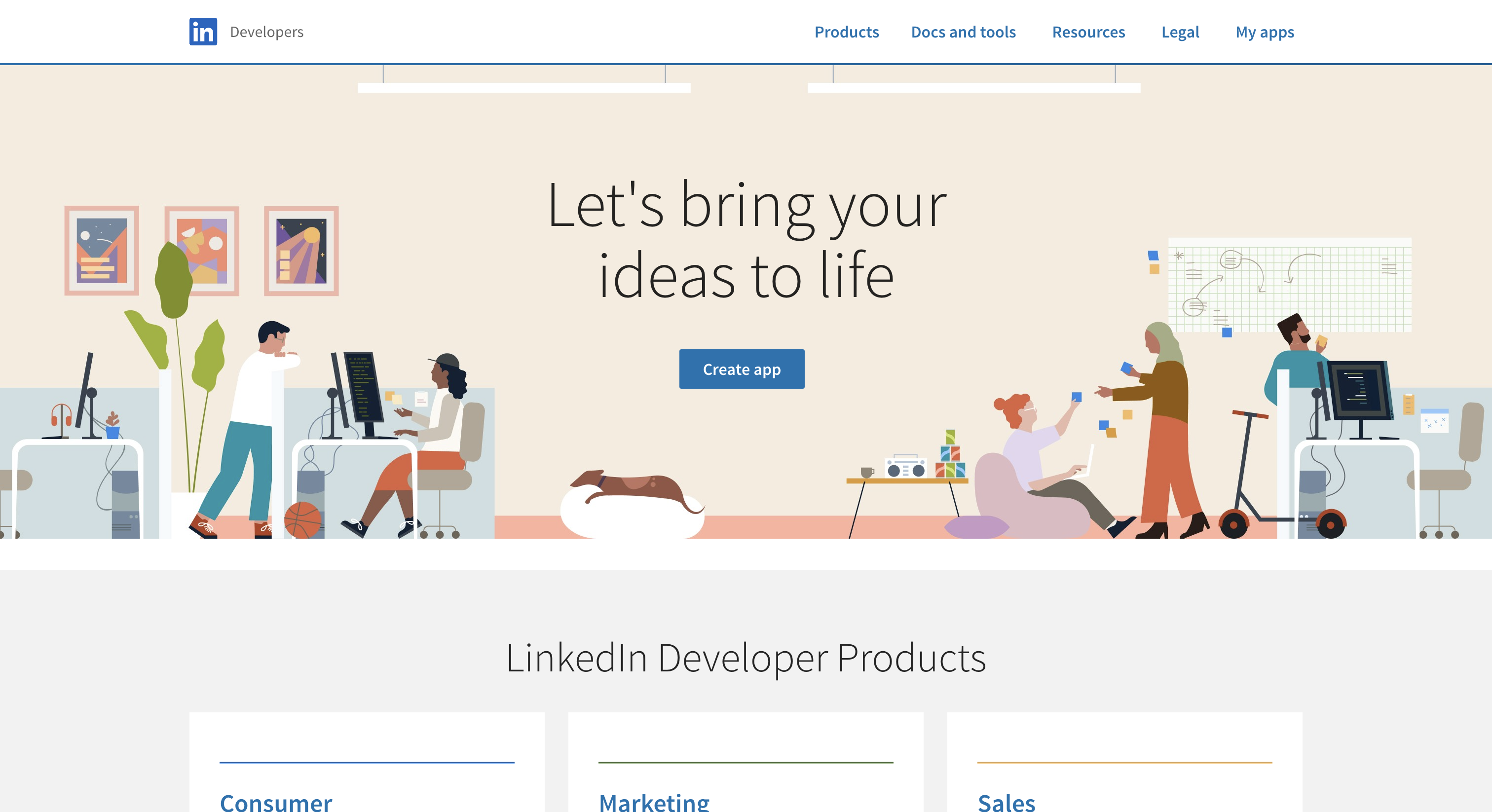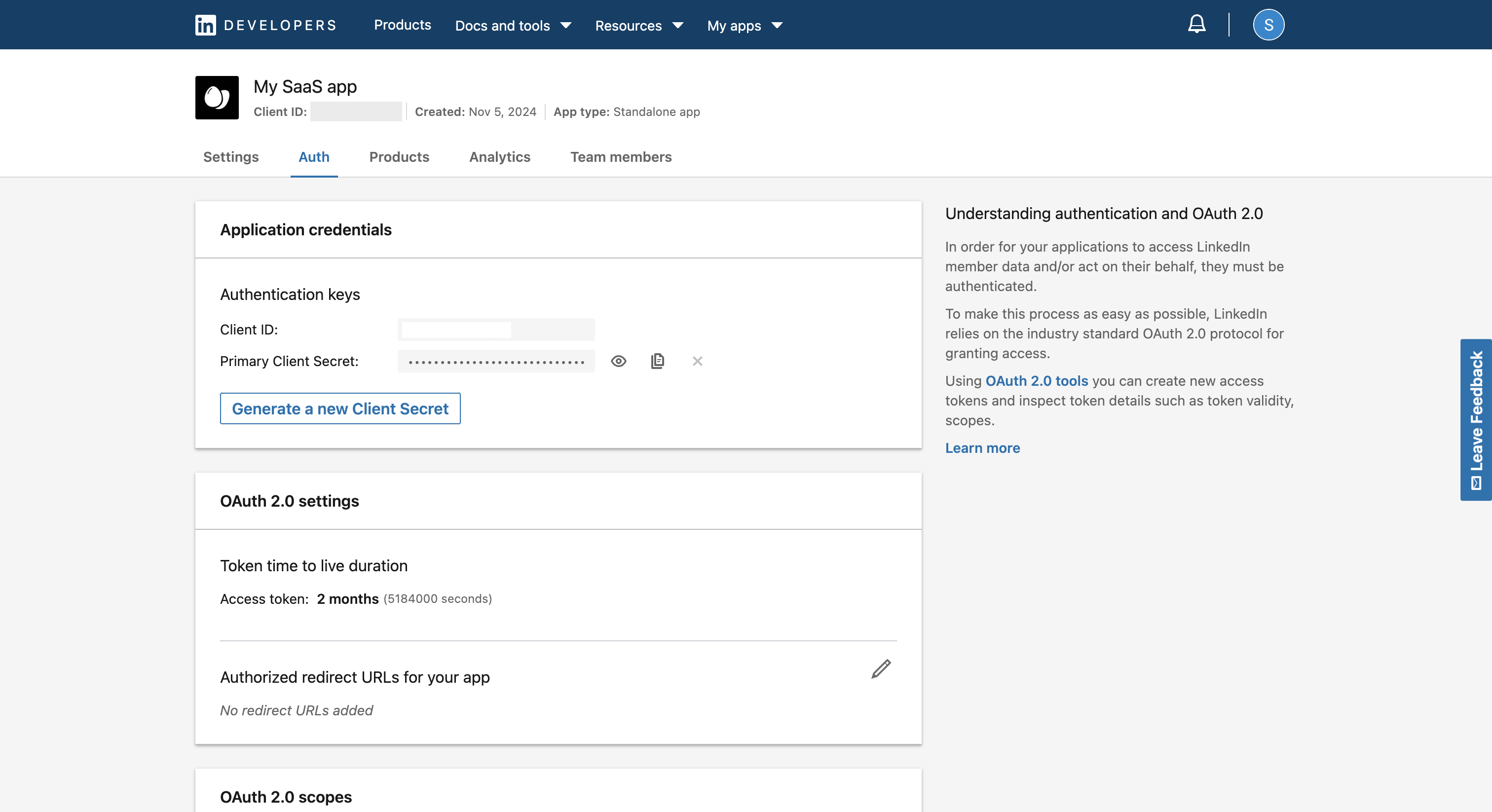 To configure LinkedIn login, you’ll need to create an app in your LinkedIn developer account.