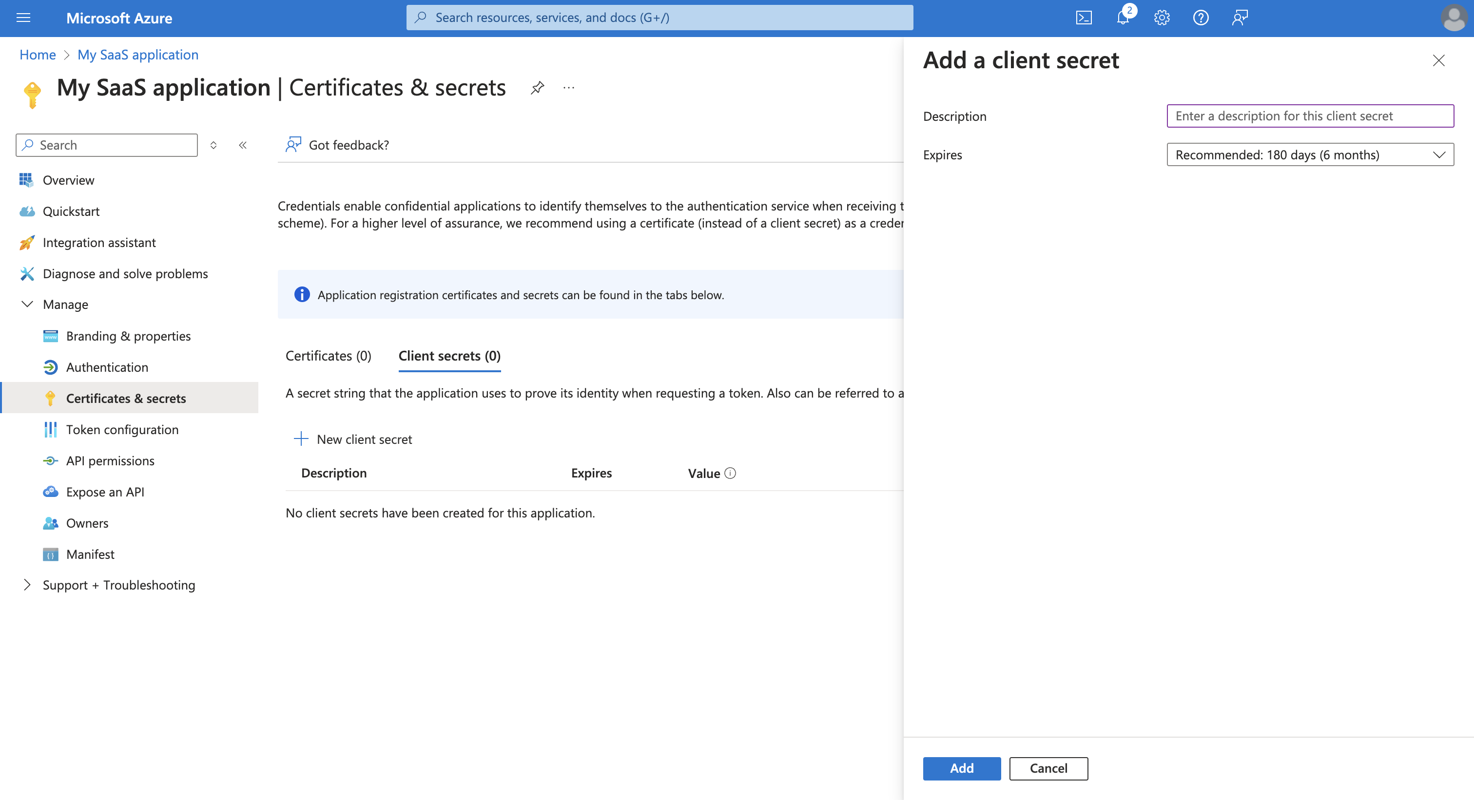 - Copy and save the Value of your client secret, as you will not be able to view it again later.
