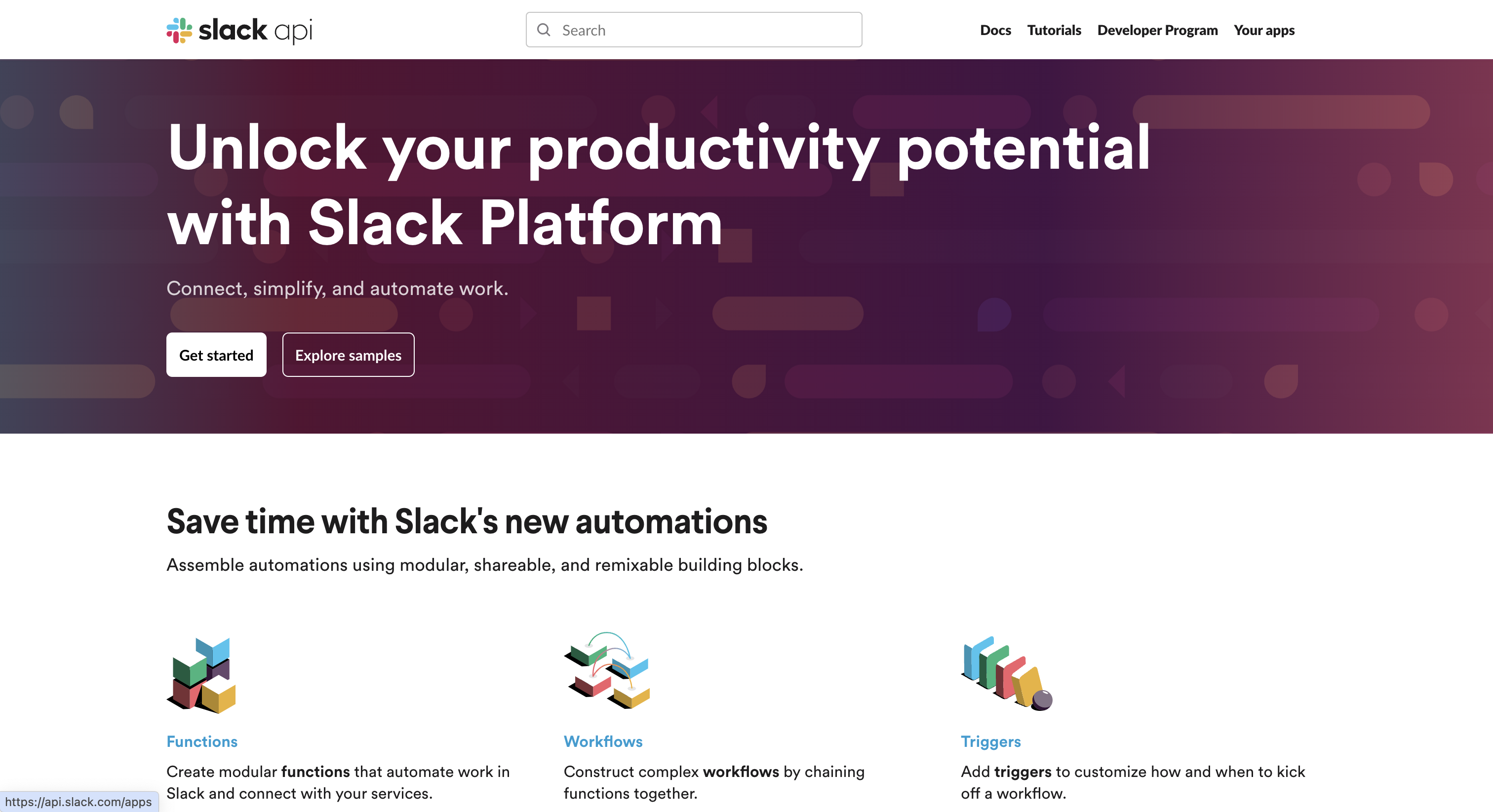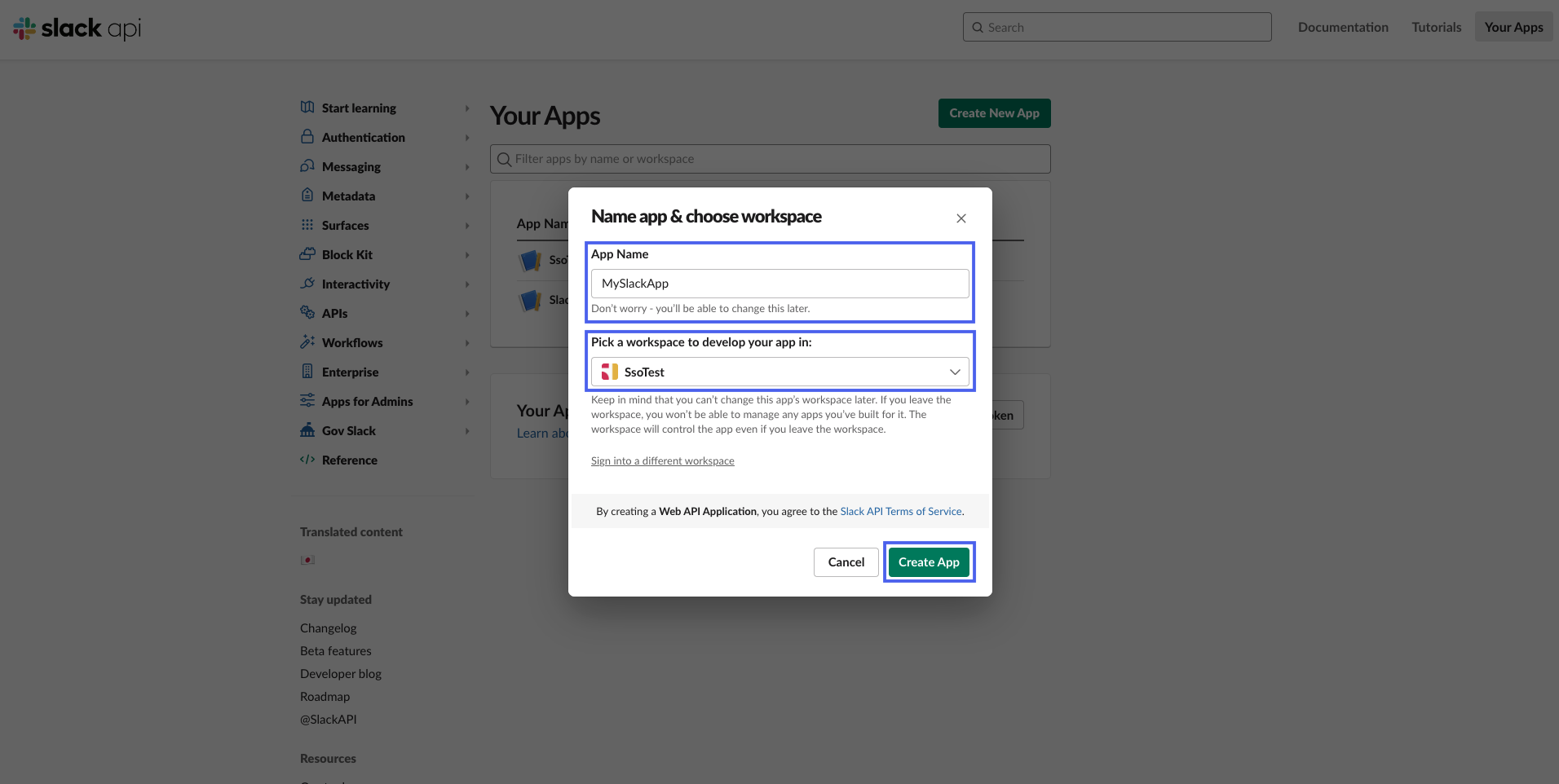 - Go to the Slack API, click on Your Apps, and then select Create an App.